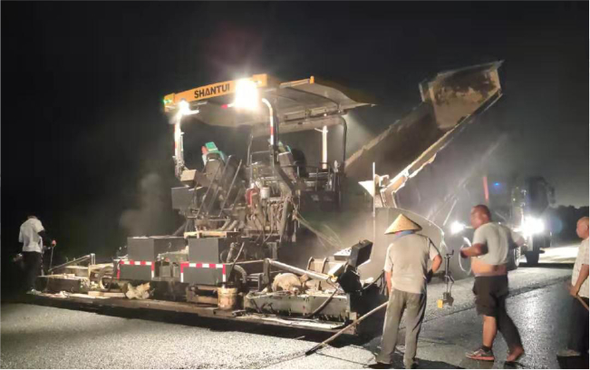 山東省青島黃島區(qū)集成路瀝青施工,攤鋪厚度為8cm,攤鋪寬度為6m,該設(shè)備不分黑白連夜施工,性能可靠,無高差,無離析,平整度好,作業(yè)質(zhì)量優(yōu),獲得用戶的高度稱贊。