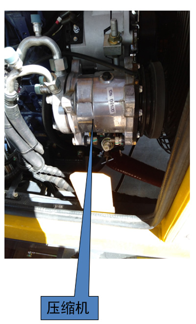 檢查冷凝器表面及冷凝器與發(fā)動(dòng)機(jī)水箱之間(停機(jī)檢查)是否有碎片、雜物、泥污,并進(jìn)行清理和用水清洗。冷凝器可用長毛刷沾水輕輕刷洗,千萬不要用高壓水沖洗。裝載機(jī)在煤場、木材場、土方等環(huán)境,經(jīng)常導(dǎo)致冷凝器散熱片堵塞,要求冷凝器表面經(jīng)常清洗。檢查冷凝器表面有無脫漆,注意及時(shí)補(bǔ)漆,以免銹蝕。檢查冷凝器表面及管接頭處(包括儲(chǔ)液器接頭處)有無油跡,若有,判斷是否有制冷劑泄漏。沿著制冷劑流動(dòng)的方向,用手摸著,若同一管道存在明顯溫差,此處存在堵塞,也可通過歧管壓力表,若表壓指示高壓高或極高,說明高壓管道有堵塞。