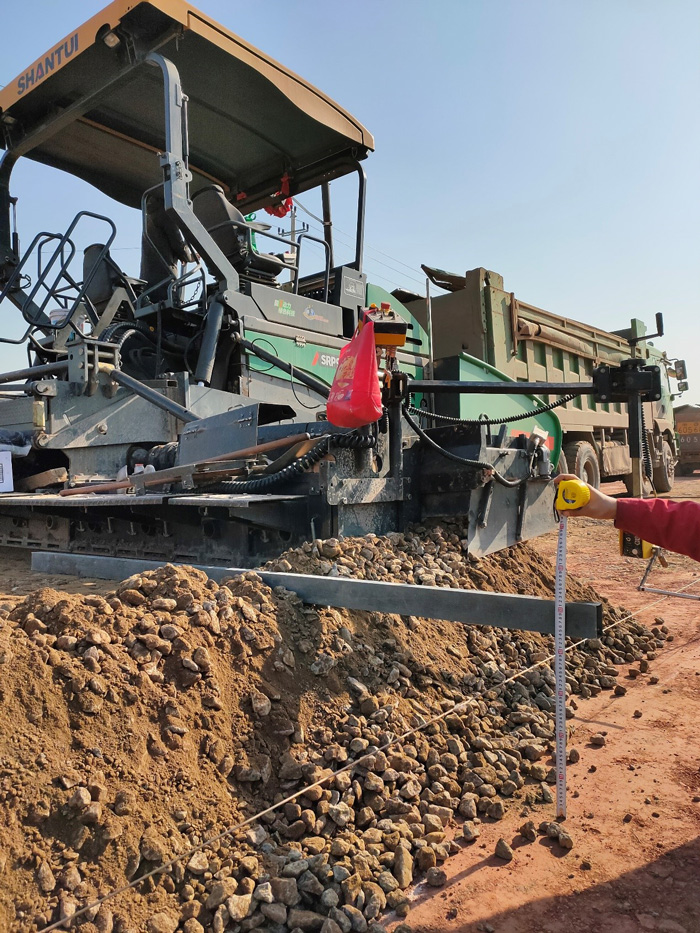 經(jīng)過(guò)多品牌攤鋪效率對(duì)比,吳總選定了擁有290馬力的可伸縮的山推C5快速攤鋪機(jī)。吳總定車(chē)后,山推道機(jī)銷(xiāo)售人員只用了3天時(shí)間就把嶄新的攤鋪機(jī)交付到了嘉興快速路的工地上,每天攤鋪4000噸水穩(wěn)料。
