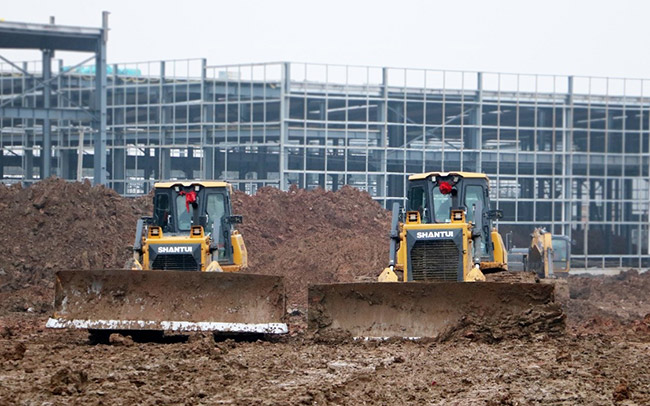 山推DH17-C2推土機(jī)等工作于南京某建筑工地,山推推土機(jī)駕駛方便、靈活,工作效率高、油耗低。濕地履帶很好的適應(yīng)南方潮濕泥濘的工作場景,駕駛舒適、視野寬闊,客戶口碑極好,回購率一直很高。