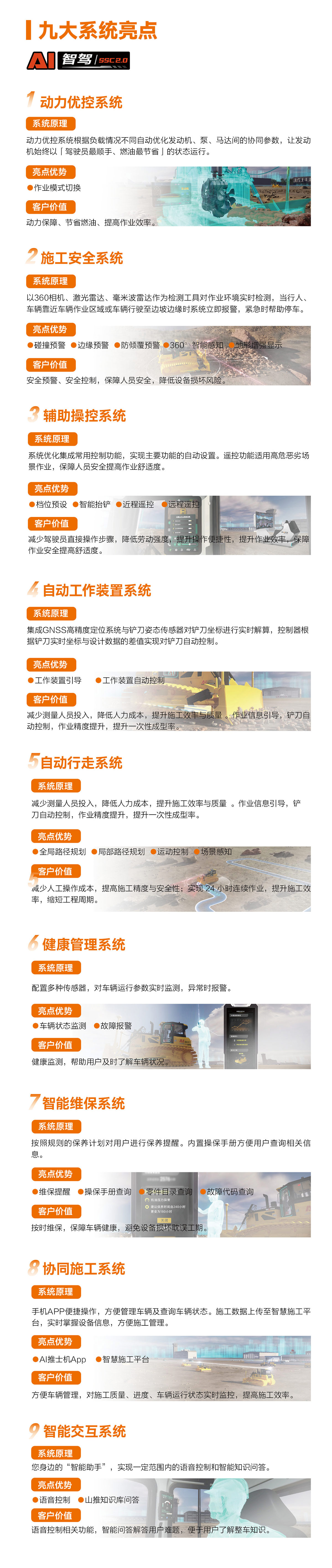 山推AI智駕推土機,可基于山推SSC( SHANTUI Smart Constuction)技術(shù)平臺實現(xiàn)AI升級,融合人工智能、大數(shù)據(jù)相關(guān)技術(shù),構(gòu)建 “感知 - 決策 - 執(zhí)行” 全智能閉環(huán),實現(xiàn)工況研判、路徑動態(tài)優(yōu)化、鏟刀厘米級精控,以技術(shù)革新引領(lǐng)工程機械智能化躍遷,是行業(yè)從 “機械作業(yè)” 向 “智能決策” 跨越的典范之作。